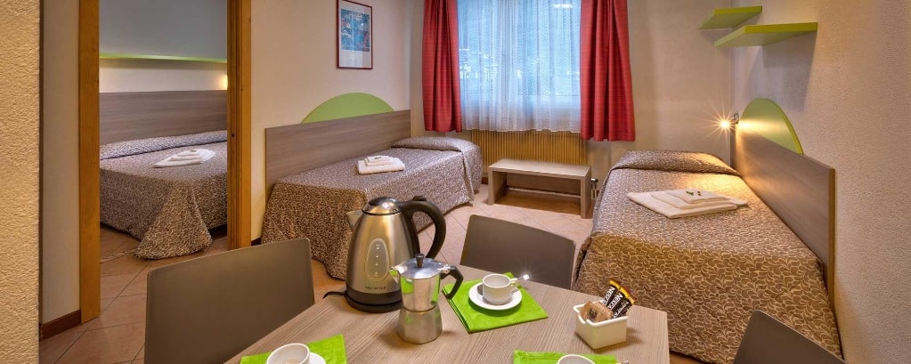 Položaj: nalazi se u Marilleva 900, 100 m od gondole Marilleva 1400, cca 800 m od centra Mezzane do kojeg se može doći pješke uz šetnicu (osvijetljena navečer) uz rijeku Noce, jednostavni i funkcionalmni apartmani