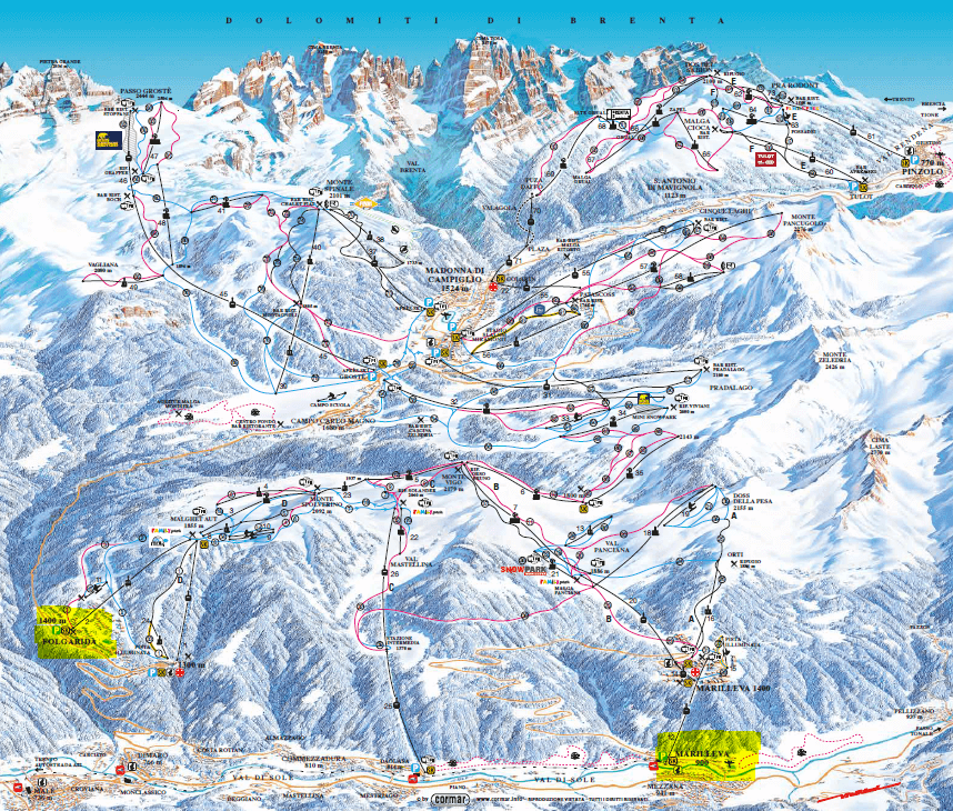 | SKIJAŠKE KARTE – MARILLEVA / FOLGARIDA (66 km skijaških staza) | |||
