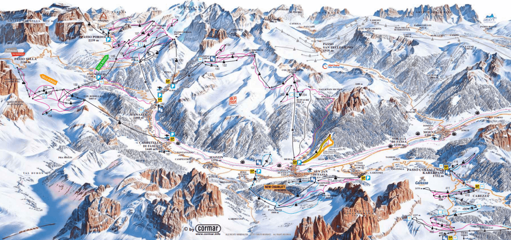 VAL DI FASSA je dio područja Dolomiti Superski koji povezuje 12 skijališta, a skijaško područje čine mjesta Canazei, Campitello di Fassa, Mazzin, Soraga, Moena, Vigo di Fassa, Pozza di Fasa. Sa busom, Val di Fassa je povezana sa skijalištima Alpe Lusia – San Pellegrino, uključujući Moenu i Falcade, i idealna je destinacija za obitelji s djecom. Preko vrhova Col Rodella i Belvedere, Canazei i Campitello su povezani na Sella Rondu. Ukupno broji oko 140 km skijaških staza, 60-ak žičara i nekoliko Snow parka. Iz bilo kojeg mjesta u dolini možete odabrati slijediti novi krug u srcu Dolomita.